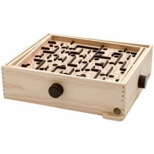 Introducing the BRIO World Labyrinth Game, a classic favorite that has been engaging players since 1946. This skill-enhancing puzzle game is designed to develop motor skills, concentration, perception, reasoning, and most importantly, patience. The goal is to guide the steel ball through the maze using the handles, sco