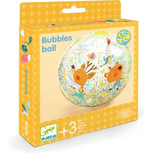 Bubbles ball is a large inflatable ball (diameter 35 cm) on the theme of water games and bubbles, filled with small coloured beads. Lightweight and easily transportable, it is the ideal companion for outdoor games or fun in the water. "Bubbling" effect with beads that shake and make noise when you shake the ball! Once
