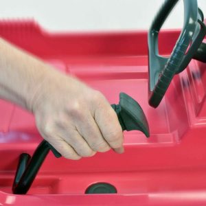 KHW's unique hi-tech sleds made especially for senior citizens and   people with handicaps using a purposefully racy design. Tubular railing and push handle system with stable side protection for   small children, senior citizens and people with handicaps. Three adjustable belts in the foot, waist and upper areas. Two