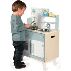 Hurry up! It's all kicking off in the kitchen! We’re rushed off our feet making a perfect meal for mum and dad! With this beautiful kitchen set, children from 3 years old will love putting together their own dishes! To help them become great chefs, this kitchen, made of natural wood and decorated in blues…