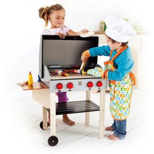 Double-sided grates, a collapsible side table, moveable wheels and an open-and-close hood make this grill a gourmet's dream. Watch out for the hot coals! This grill encourages collaborative play. Use the toy grill to teach kids about safety around a real grill. Dimensions: 70 x 63 x 38 cm Ages 3+ PLEASE NOTE: This item