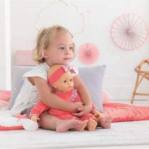 Lilou is a 14-inch soft-bodied baby doll with brown sleepy eyes for little ones wanting a baby of their own to love. Her head, arms and legs are made of soft vinyl that is lightly scented with vanilla, a Corolle signature.  She can even suck her thumb, like a real baby. Lilou wears a floral-print…