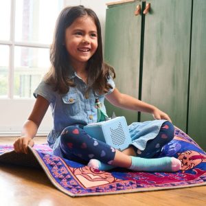 Meet the Toniebox – a new audio system designed for little listeners. Turn it on, pop a Tonie on top and let the audio adventure begin! Screen-free listening that inspires your kids’ imagination in ways that over-stimulating flashing screens do not. This set includes: – One red Toniebox – A charging station to power yo