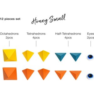 Explore the colors of honey and nature in this 36 piece set includes 6 octahedrons, 12 tetrahedrons, 12 half-tetrahedrons, 6 eyes (in total 36 pieces) + Leaflet + Limited Edition "Inspiration Book". With a large set you can either build one large construction or several smaller ones and share the process of creating wi
