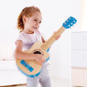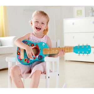 Be a real flower child with this cool 1960s-themed guitar! A cross between a classical guitar and a ukulele, it’s the perfect size for younger children wanting to learn an instrument. Vibrant blue 26-inch wooden guitar Optimized for play by toddlers and younger children Great for learning about simple addition and subt
