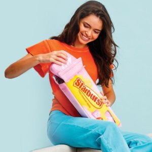 This full-color, officially licensed pillow is comprised of a fleece zipper closure bag with a clear window in the front to show the four brightly colored Starburst shaped pillows inside Includes 4 removable chews in a fleece bag Super soft fleece material © 2024 Mars or Affiliates. STARBURST Marks used under license D