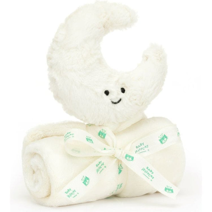 Amuseable Moon Soother offers the perfect comfort at sleep times. With a soother and matching moon in soft and textured white fur created from recycled fibres, little ones can cuddle up with the blanket or the tiny Amuseable Moon on the corner for the most joyful of dreams. Tested to and passes the European Safety Stan