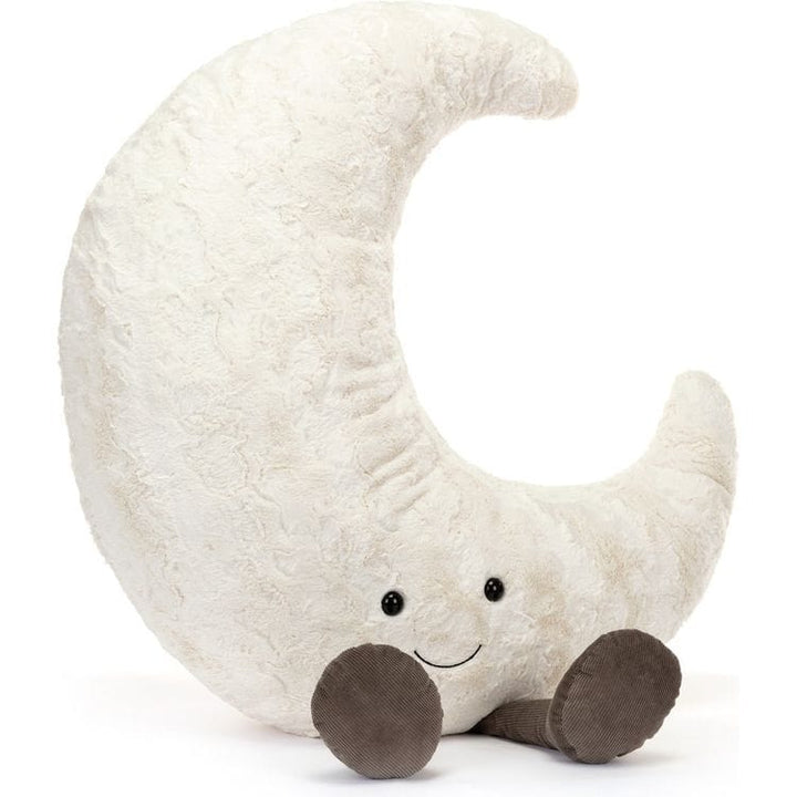 Gorgeously textured with velvety craters, Amuseable Moon is full of fun! A midnight matey for bedtime hugs, this pearly-white pal is curvy and cuddly. With squidgy cord booties, a weighted bottom and a peaceful smile, this moon's waxing poetic! A magical crescent and a marvellous present Suitable for age 3+ Hand wash o
