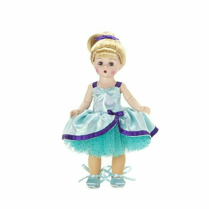 This lovely 8” collectible doll is the perfect gift for dancers or dance fans! She wears an aqua and purple satin and tulle dance outfit. Accessories include nude tights and light aqua ballet shoes with ribbon ties. This lovely 8” collectible doll is the perfect gift for dancers or dance fans! She wears an aqua and p