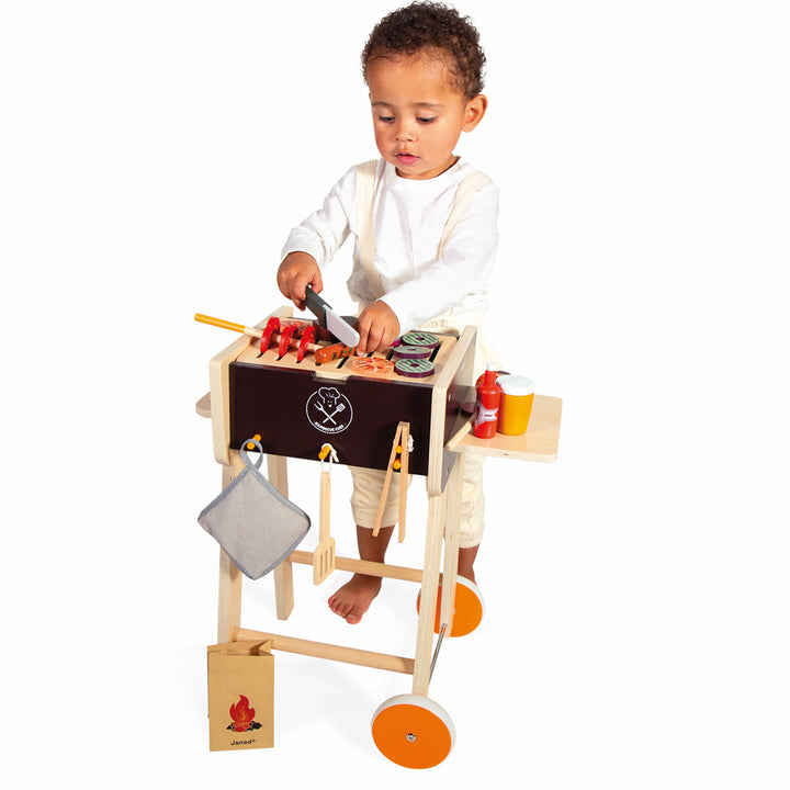 Can you smell the delicious smell of grilled sausages? Meals are sure to be festive with this magnificent wooden barbecue toy, that is very realistic! Children, put on your aprons, you’re the chef! Barbecue evenings, the not-to-be-missed events of the summer, will now be able to take place all year round, orchestrated