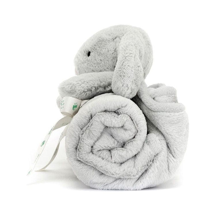 The Bashful Silver Bunny Blankie combines our most loved Bashful Bunny character’s long lop ears, pink suedette nose, embroidery eyes and soft squashy paws with a blankie made from the same cloud soft, silver-grey coloured fur in recycled fibres. Neatly rolled and tied with a Baby Jellycat grosgrain ribbon, this is an