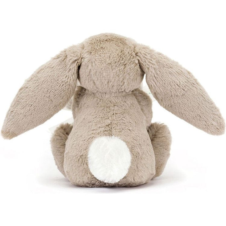 A perfect gift for newborns, the Bashful Bunny Soother is our most loved Bashful Bunny in a soft fur, with long lopped ears, a pink suedette nose and stitched eye detail holding a square shaped soother, un-stuffed and irresistibly soft to touch. Made from recycled fibers and neatly rolled up and presented with a Baby J