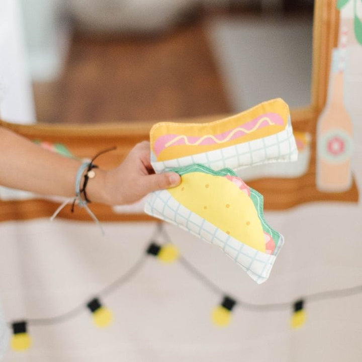 The Camper Food Truck & Kitchen Storefront will keep your little chefs playing for hours. Double sided illustrations lets kids run their own food truck on one side and cook up the yummiest food on other. Printed on both sides with two different shop scenes Sets up in seconds with the hook and loop hanging strip D
