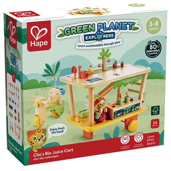 Join Clio the Jaguar as she zooms around in her solar-powered juice car, serves up fresh, local smoothies and champions the benefits of carbon-neutral fruit. Part of the Green Planet Explorers range, this playset teaches children eco-intelligence, and with plenty of fun accessories, it’s ideal for free play. IDEAL FOR