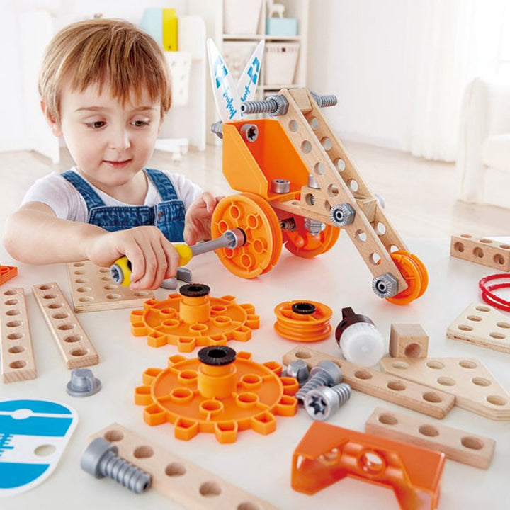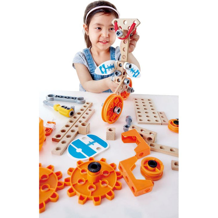 Broaden your understanding of physics and engineering with this fantastic set. With easy-to-use tools and loads of pieces to build with including pulleys, propellers and even an LED light. Compatible with other Junior Inventor sets. The only limit is your creativity! Easy-to-follow instructions Inspires to build a prop