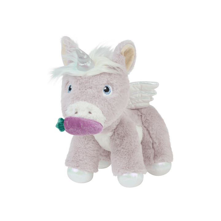 Prepare for a sparkle-filled adventure with Dinkum Unicorn Glimmer in a beautiful lilac colour! This twinkling unicorn is ready to add a sprinkle of magic to every day, bringing both wonder and whimsy to playtime. With a plush lilac body, shimmering features and magical accessories, Glimmer is the perfect plush compani