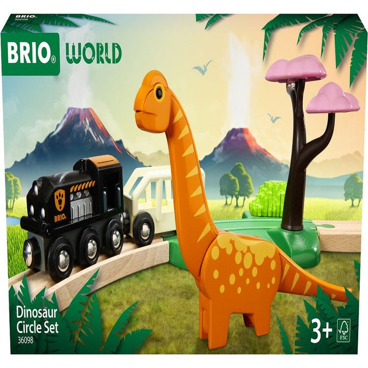 Roar! There’s a dinosaur on the track in the Dinosaur Circle Set. This 12-piece dinosaur-themed train set includes a train with wagon, dinosaur figure, grassy meadow crossing and wooden tracks to complete the circle layout. Be careful as the train approaches the crossing as this colourful dinosaur loves to eat the leav