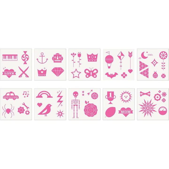 Create your own body art design with the F.A.O. Schwarz® DIY Glitter Body Art Kit! Using the 10 sheets of body art stickers and 6 glitter paints colors, this kit lets you decorate your body with sparkly colorful glitters. Choose your favorite sticker design and place the adhesive side on your skin. Remove the transpare
