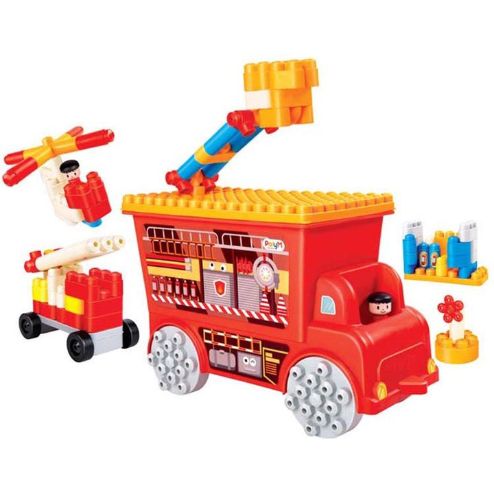 Learn about firefighting with this truck! Follow the inspiration leaflet to build a fire truck and various fire rescue vehicles to extinguish fire and save life. Easy maintenance and noiseless play make it perfect for your children. With 100 soft blocks included, this set is designed to enrich playtime while promoting