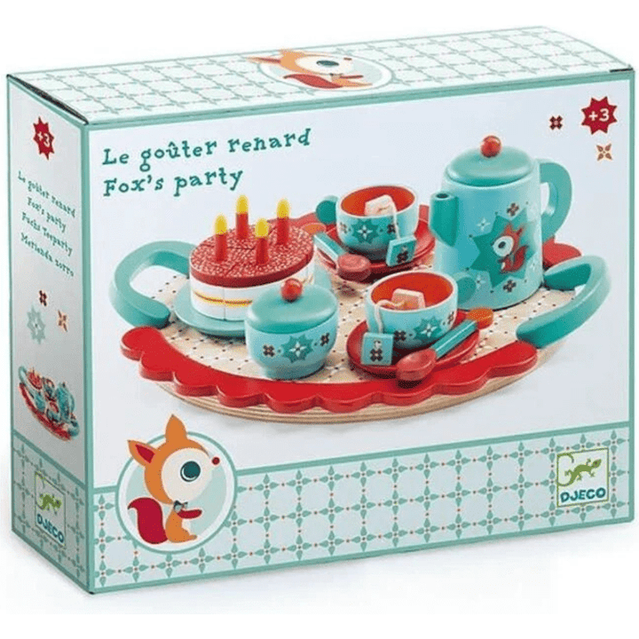 An adorable wooden tea set for birthday celebrations and enjoying tea with friends. Contents: 1 tray, 2 cups, 2 saucers, 2 teaspoons, 2 tea bags, 1 lidded teapot, 1 lidded sugar bowl, 1 plate with a cake divided into quarters with 4 candles. Product dimensions: 11.4" x 9.1" For ages 3 and up