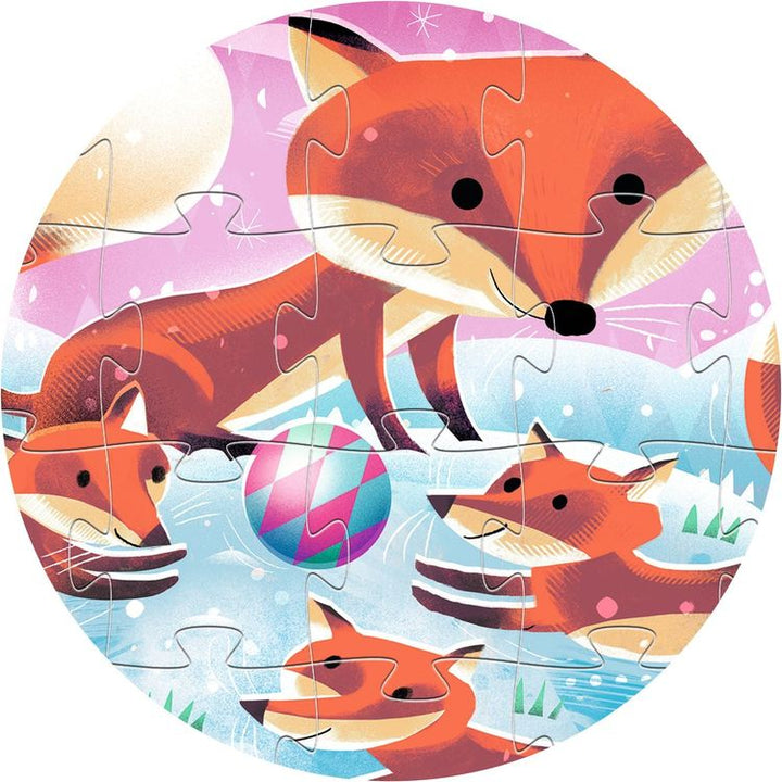 Which is Ginger the little fox’s favorite season? Winter. Set against a snowy backdrop, he’s having so much fun! A superb 24-piece puzzle in a stylish fox-shaped box. Decorative shaped box for your child’s bedroom. Large, easy-grip pieces. A premium puzzle that can be done over and over again. A puzzle for making up an