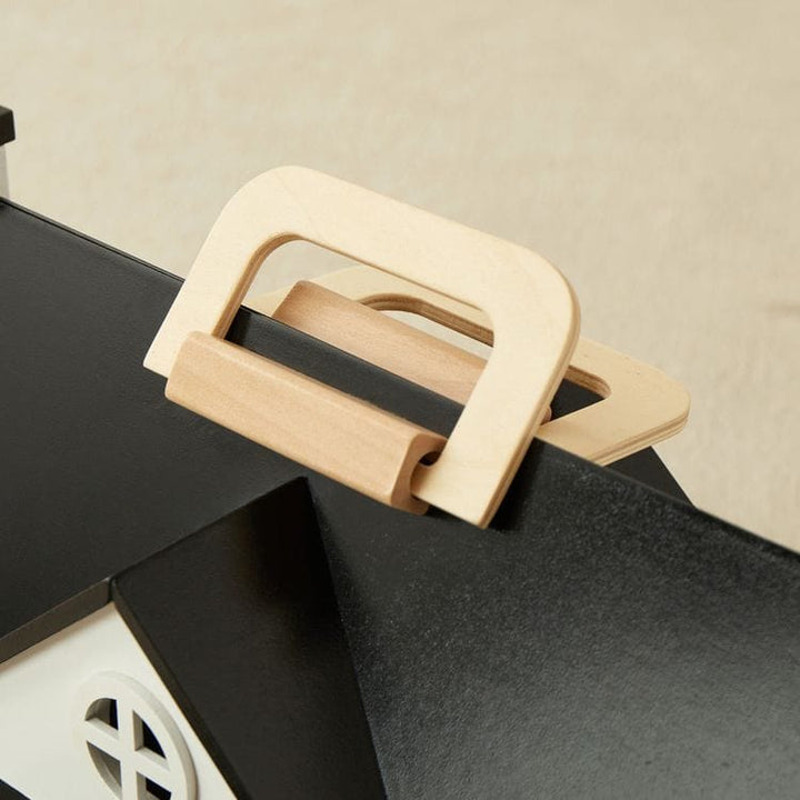 There’s no place like home–Home Sweet Home Dollhouse, that is! Our carry along dollhouse opens it’s doors to a ton of imaginary play! Comes with bathroom (tub, toilet, sink), bedroom (bed, nightstand, plant) living room (sofa, end tables with drawers that open, tv and 2 lamps) and kitchen (fridge, oven and sink), plu