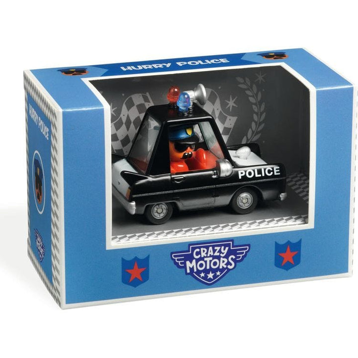 You can hear its loud siren and see its flashing lights from far away. Quick, everyone out of the way! Hurry Police is in pursuit of the bad guys! Metal car with suspension. A driver created specially for each car. Plastic parts give the car a unique look. Ultrasonic metallic paint. A world of crazy cars – each with it