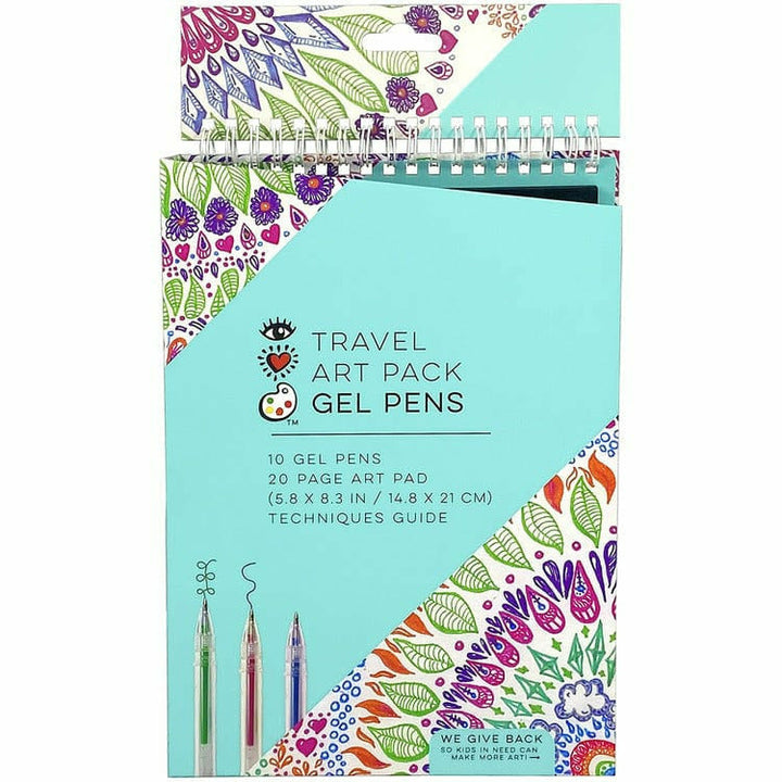 Storage and drawing station all in one! This convenient compact package has 10 gel pens on one side and a high-quality paper pad on the other. Just fold up and take with you everywhere! iHeartArt carries only top-quality materials. These smooth long-lasting gel pens are the best on the market! • The Travel Pack come