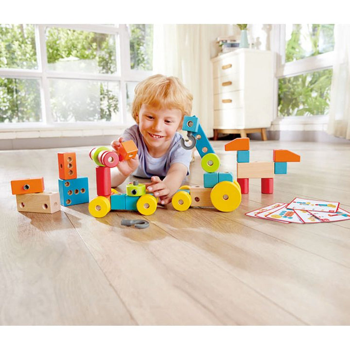 Unleash boundless creativity with our Infinite Imagination Building Blocks. Crafted from high-quality beech wood, these blocks inspire imaginative play, foster fine motor skills, and offer endless possibilities. DURABLE DESIGN: Crafted from a blend of wood and plastic, these blocks feature secure structures, ensuring s