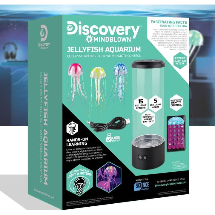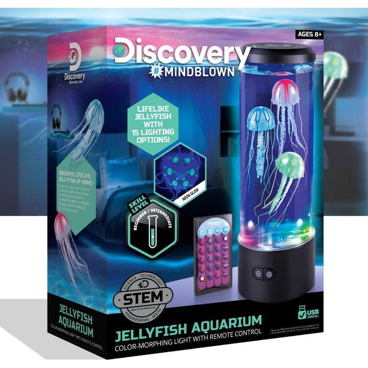 Discovery™ #Mindblown Jellyfish Aquarium is a fun and educational way for your child to observe realistic sea life at home. Customize the ambiance of the room by adjusting the aquarium’s lighting to your color preference by choosing any of the 15 lighting options and 5 light modes. You and your child will watch in amaz