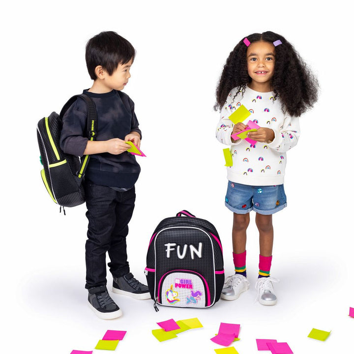 The Starter backpack is perfect for young students ages 3 to 6 yrs old. The bag fits a standard A4 folder when placed to the back of the bag. It does not fit a binder. These featherweight, ergonomic backpacks have sturdy form and structure making them comfortable and stylish! The line expands into sling bags, cosmetic