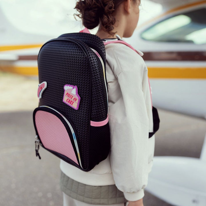 The Starter backpack is perfect for young students ages 3 to 6 yrs old. The bag fits a standard A4 folder when placed to the back of the bag. It does not fit a binder. These featherweight, ergonomic backpacks have sturdy form and structure making them comfortable and stylish! The line expands into sling bags, cosmetic