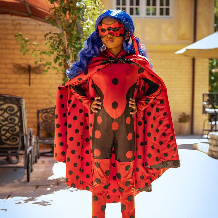 Celebrate ten years of Miraculous magic with our A Leading Role 10th Anniversary Child Dress Up Set; this officially licensed anniversary 4 pc. costume set comes complete with Ladybug’s signature mask, dramatic double-lined cape, wig with hairbow pigtails, and sleek jumpsuit with back zipper closure. Whether you're cos