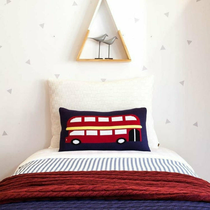 Rian Tricot’s extensive collection of cushions, pillows, and blankets are well-designed with a varying yet complimentary color pallet; each individual product coordinates with others to bring effortless luxury to every nursery. London Double Decker Bus pillow Materials: Knitted cotton 50% and nylon 50% Product Dimensio