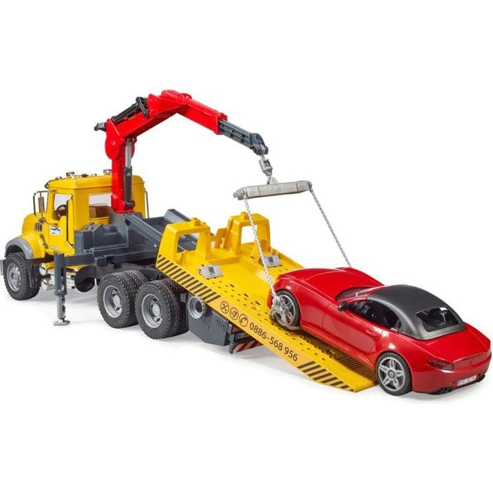 MACK Granite Tow Truck with Bruder Roadster