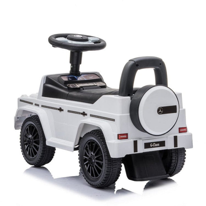 Officially licensed Mercedes G-Wagon Push car omes with under the seat storage, steering wheel with music and horn sounds & strudy back rest. Best for ages 1-3 years This item does not qualify for free shipping. Additional shipping costs will apply due to the size/weight of the item.