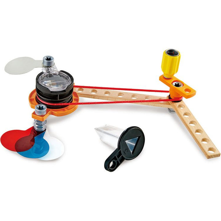 Explore the world of optical science and light with this set of eight experiments. Perfect for young scientists and inventors! EXCITING EXPERIMENTS: This optical kit consists of the following eight experiments – a Periscope, a Cone Illusion, a 3D Viewer, a Rotating Kaleidoscope, an Infinity Mirror, an Optical Lab, an O