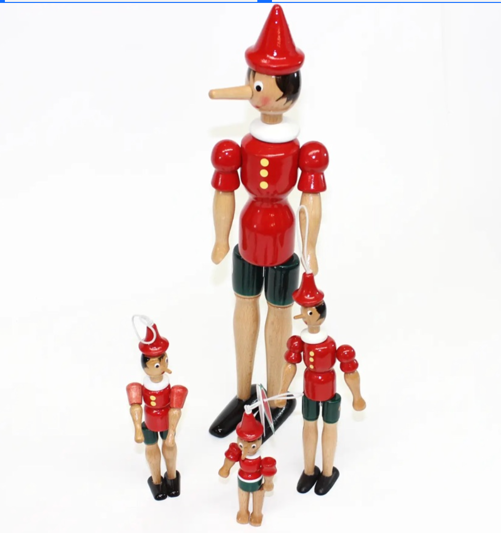 Pinocchio Classic Wooden Toy Figures. Handmade in Italy
