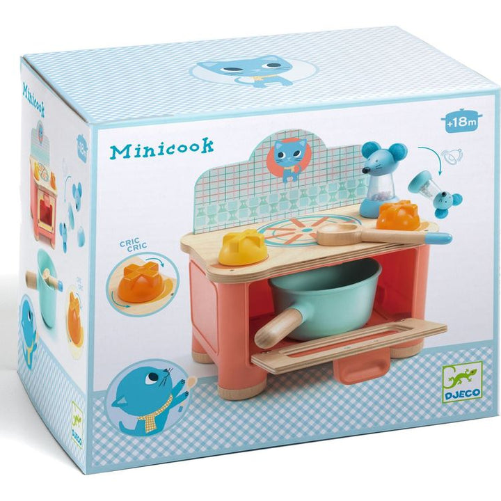 A small compact cooker, from the Djeco brand, equipped with an oven and a hob: the child can cook delicious meals using the saucepan and the large wooden spoon. Don't forget to season your dish before serving it with the mouse salt shaker. Contents: 1 cooker (plastic and wood), 1 saucepan, 1 large spoon, 1 mouse salt s