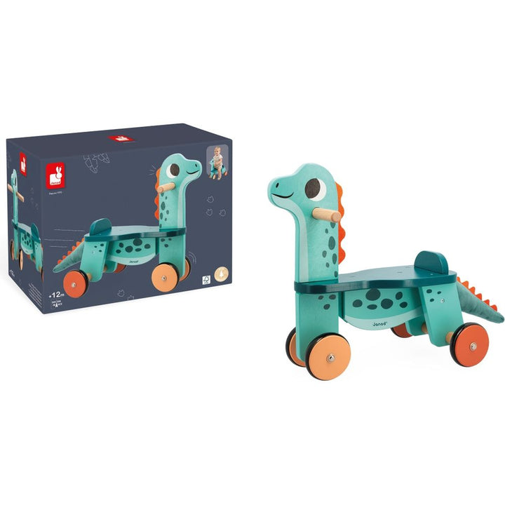 Watch out for the approaching Portosaurus! Go for long rides on this magnificent brachiosaurus. This ride-on toy is equipped with two directional wheels at the front to facilitate turning of all kinds. The wheels are equipped with silicon in order to be able to creep silently through the forest. The dinosaur's tail is