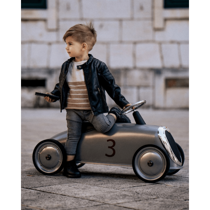 The Riders, the new XL ride-on car from Baghera! With its 90cm length and large wheels, this gorgeous car is for seasoned pilots! Strong, silent and very maneuverable, this large ride-on is all metal. A maxi ride-on for champions with big ambitions! A durable ride-on car with sleek, vintage design. Dimensions:Â 34" x 15