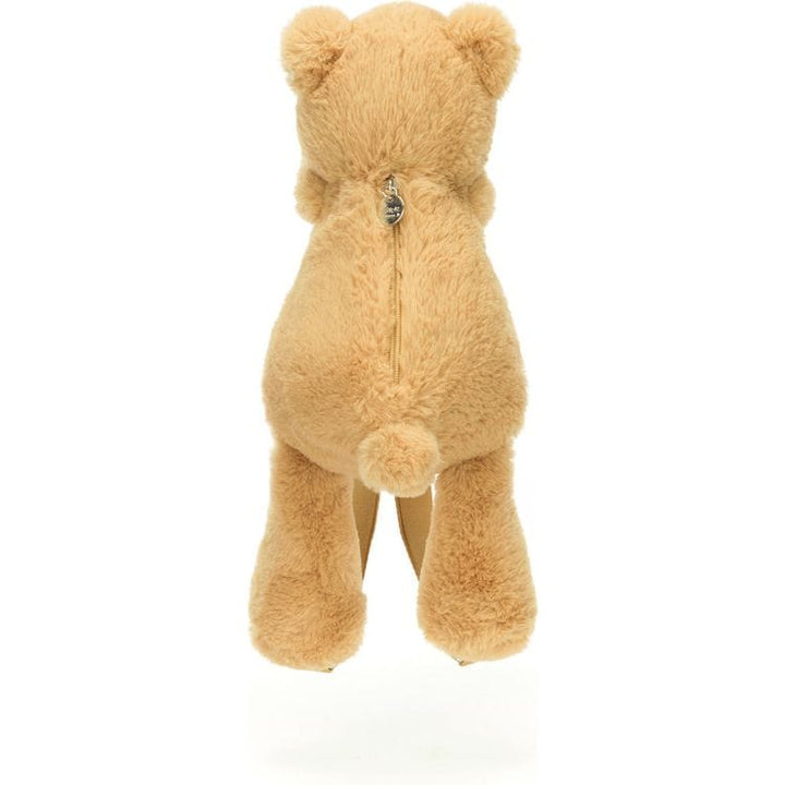 Wherever you roam, take everything you need in the Smudge Bear Backpack! This honey cub has soft, squashy paws that cling to sturdy adjustable straps, and a strong silver zipper with a Jellycat disc. Keep your valuables tucked away in that soft, lined tummy. Tested to and passes the European Safety Standard for toys: E
