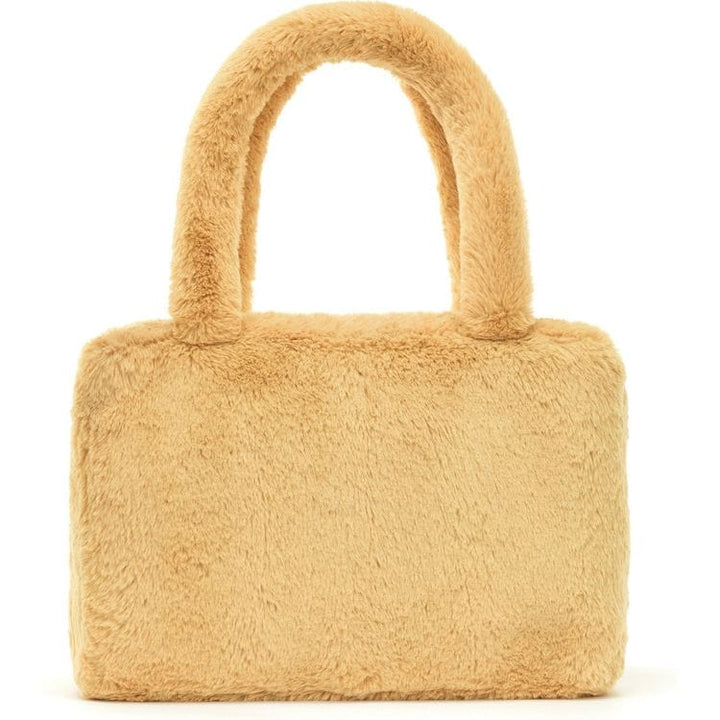 Keep your belongings nice and cosy with the Smudge Bear Tote Bag. This whimsical tote has honeycomb fur with a cotton lining, silver zipper and metal Jellycat tag. A chunky bear face pops out from the front, with cute round ears and a fudge suedette nose. A statement piece with kawaii charm. Tested to and passes the Eu