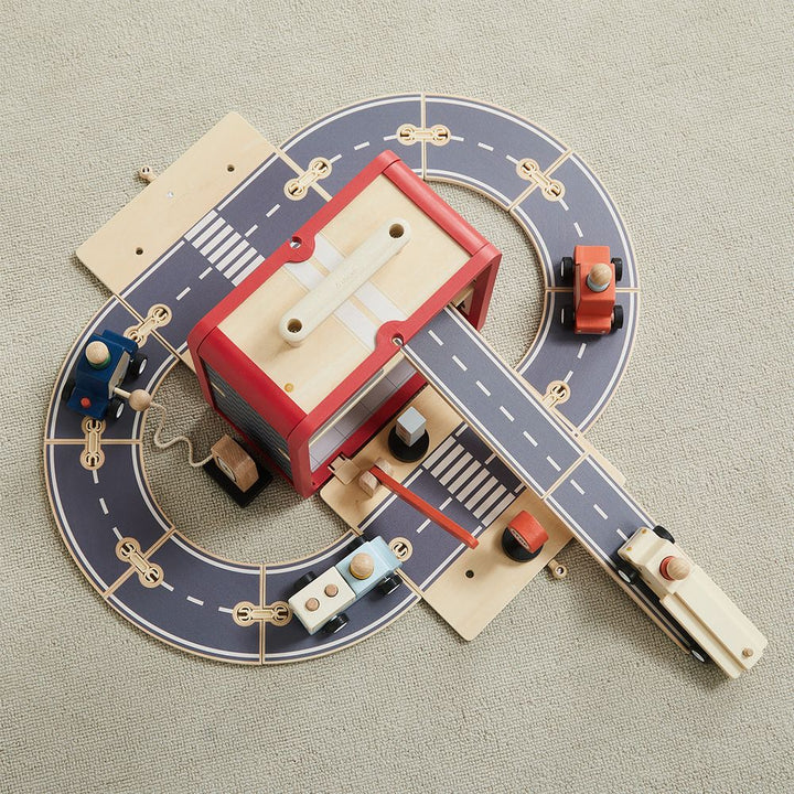 Your kiddos will love our Take with Me Garage. It comes with 12 wooden pieces including cars, trucks, peg people, ramps, signs, charging station and much more. But the best part is kids can pack up all the pieces into the carry along garage and go anywhere. Perfect for car rides, plane rides, or just quiet imaginary