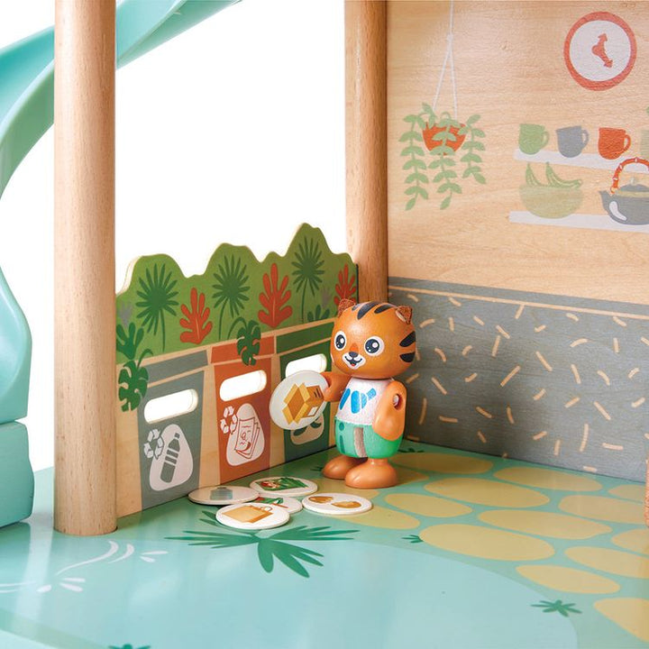 This set from the Green Planet Explorers range is crafted from sustainable bamboo and other eco-friendly materials that come together as a two-floor jungle house to teach your little eco-warriors all about recycling. Featuring a variety of elements such bed and bathroom aspects, as well as 18 garbage cards that need to