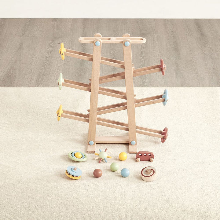 The Tumble Track is an innovative toy designed to bring endless hours of fun and excitement to children. With its colorful ramps and engaging design, it captivates the imagination and provides a unique sensory experience. Watch as widgets, cars, balls, and spindly roly-polys race down the ramps, each creating a unique