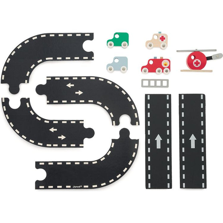 The siren sounds, let the firefighters through! Let your child discover the daily life of firefighters. This clever wooden fire station consists of 2 firefighters who can slide down the pole, a helicopter and 4 vehicles: 2 cars, 1 ambulance and 1 fire truck with its removable ladder. They can all use the ramps, the lif